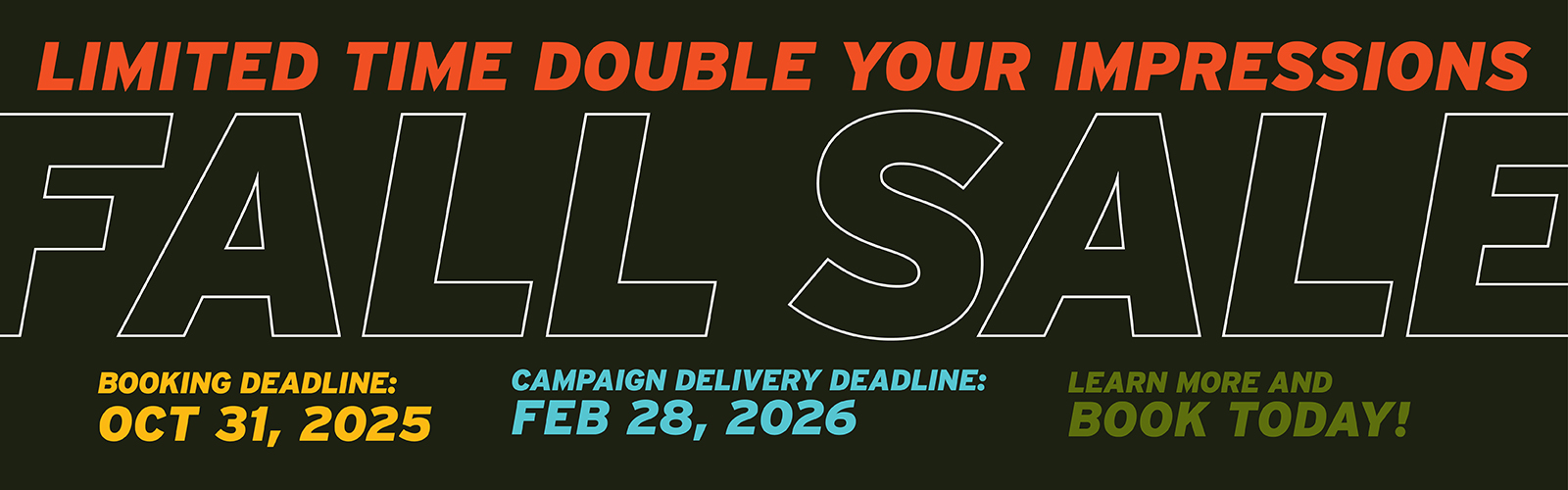 Book by October 31st to take advantage of exclusive fall pricing: $25 CPM (regularly $50)